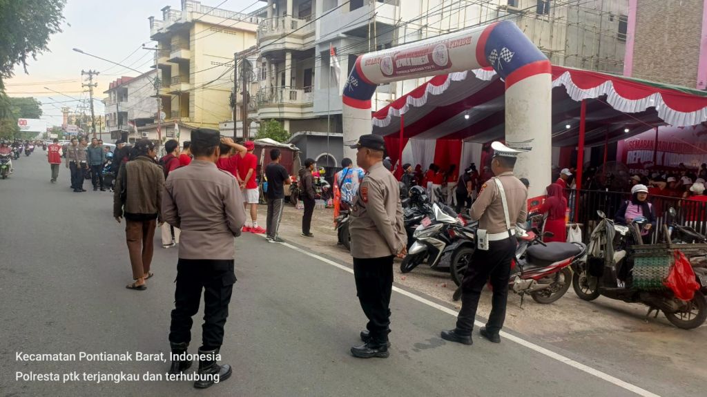 Kegiatan yang berlangsung meriah ini diikuti oleh ratusan peserta dengan nuansa penuh semangat menyambut kemeriahan HUT RI. Selain melakukan pengamanan jalannya acara, personil Polsek Pontianak Barat juga aktif menyampaikan pesan-pesan Kamtibmas kepada warga.