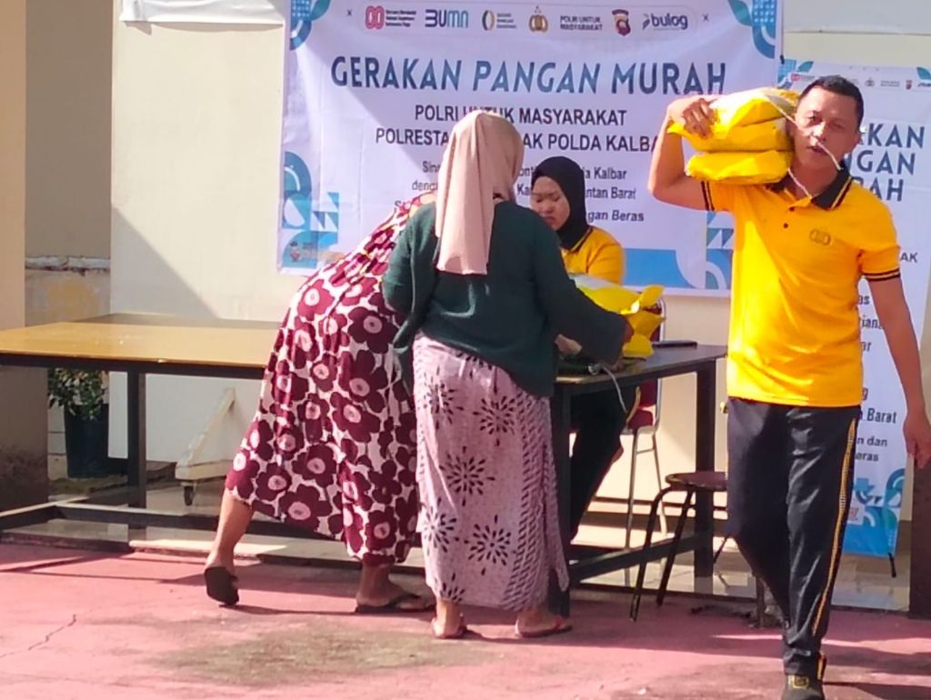Pontianak,Kalbar – Sebanyak satu ton beras SPHP ludes terjual diserbu masyarakat dalam program Gerakan Pangan Murah (GPM) Yang digelar dihalaman Polsek Pontianak Utara. Sabtu (16/8/2025).