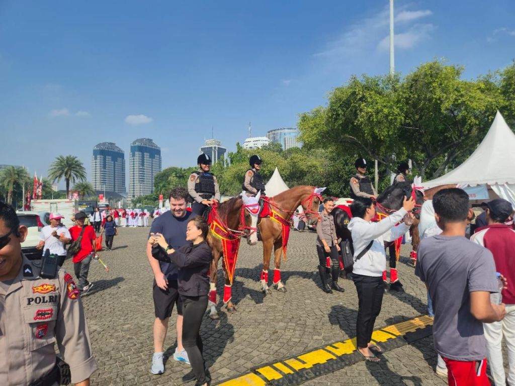 Di tengah keramaian dan semangat nasionalisme yang membuncah, kehadiran pasukan berkuda Turangga Polri menjadi daya tarik tersendiri bagi masyarakat. Tidak hanya menjalankan fungsi pengamanan, pasukan berkuda juga menciptakan suasana yang lebih humanis dan bersahabat di tengah perayaan nasional tersebut.