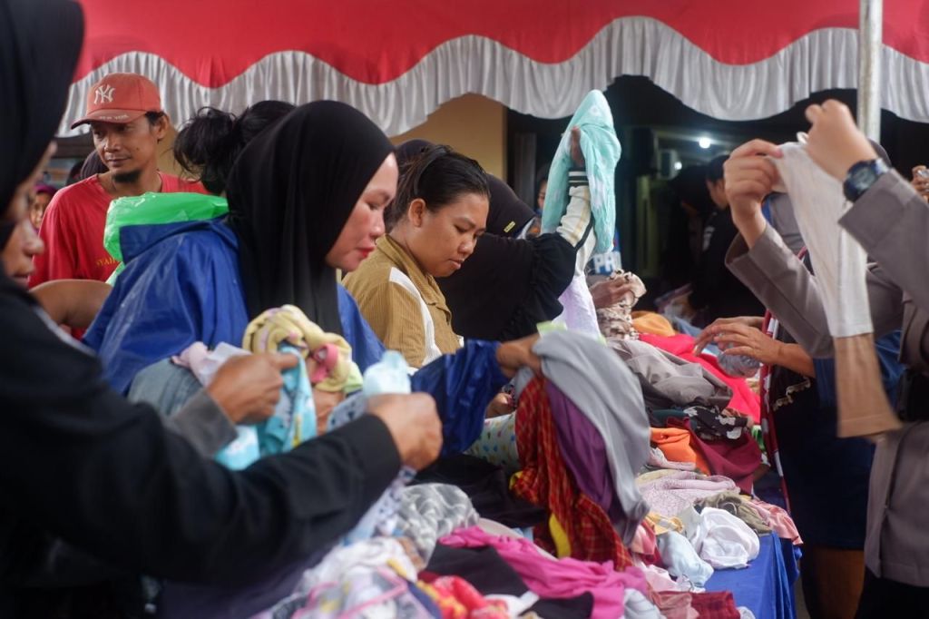 “Jumlah pakaian yang disalurkan sebanyak 5.127 pcs, terdiri dari hijab, baju, kemeja, celana, rok, hingga pakaian bayi yang masih layak digunakan. Antusiasme masyarakat sangat tinggi, tercatat sebanyak 516 warga hadir menerima bantuan ini,” jelas Pakor Polwan.