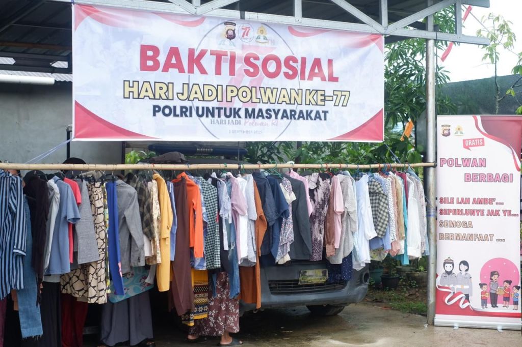 “Dalam momentum Hari Jadi Polwan ke-77, kami ingin hadir langsung di tengah masyarakat dengan kegiatan sosial. Salah satunya berbagi pakaian layak pakai agar dapat dimanfaatkan oleh warga yang membutuhkan,” ujar Karorena.