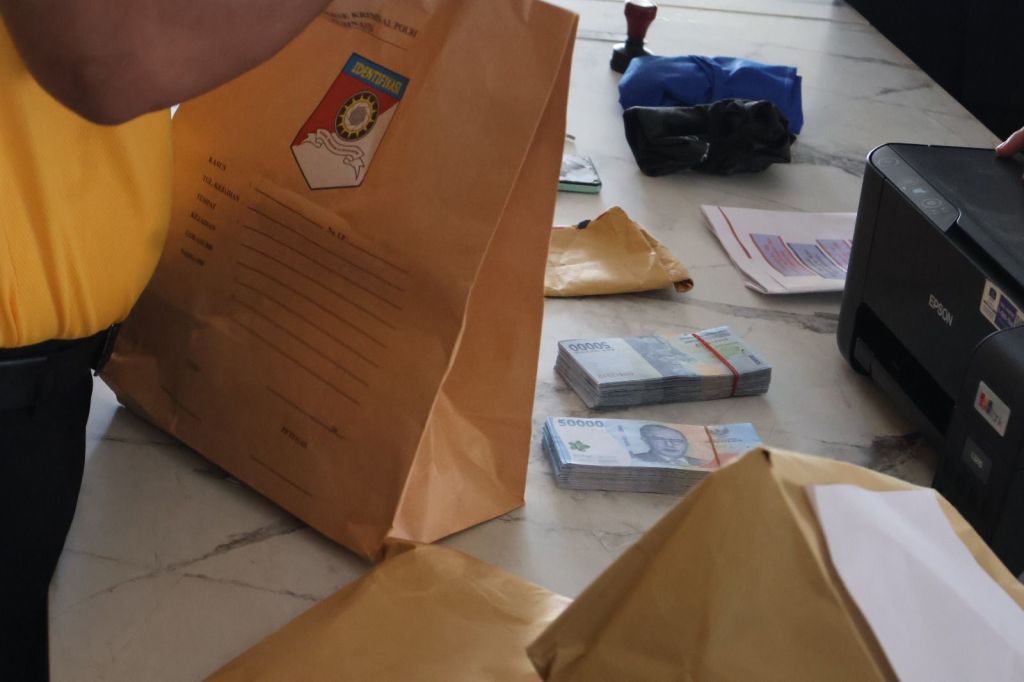 Selain uang palsu, polisi juga menyita berbagai peralatan yang digunakan untuk memproduksi, seperti printer Epson 3210, stempel cap, handphone, kertas warna, gunting, lem, hingga beberapa ikatan uang hasil cetakan yang belum dipotong.