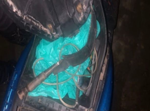 Petugas kemudian melakukan penggeledahan terhadap sepeda motor yang ditinggalkan. Dari hasil pemeriksaan, ditemukan sejumlah barang mencurigakan berupa satu alat pemotong besi, satu senjata tajam, serta empat unit aki motor yang diduga hasil kejahatan.