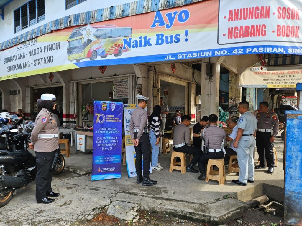SINGKAWANG – Polda Kalbar- Polres Singkawang, Dalam rangka memperingati Hari Ulang Tahun (HUT) Lalu Lintas Bhayangkara ke-70, Satlantas Polres Singkawang menggelar kegiatan bakti kesehatan untuk para sopir bus di Terminal Pasiran, Jalan Stasiun, Kelurahan Pasiran, Kecamatan Singkawang Barat, Rabu (10/9/2025).