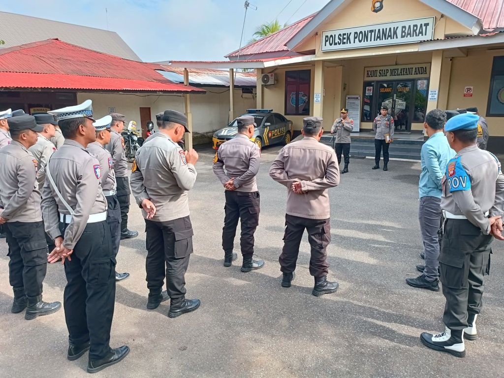 Pontianak, Polda Kalbar – Kapolresta Pontianak Kombes Pol Suyono S.I.K., S.H., M.H. memimpin langsung pelaksanaan apel pagi di halaman Mapolsek Pontianak Barat yang diikuti oleh seluruh personel Polsek Pontianak Barat. Selasa (16/9/2025).