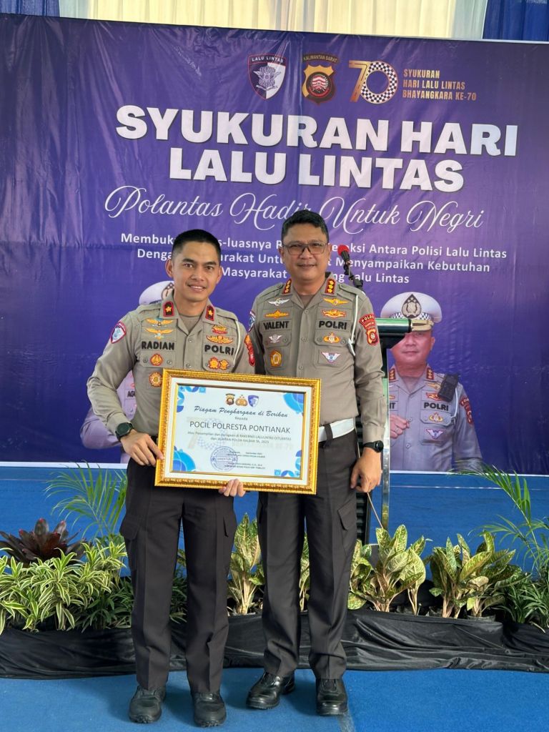 Pontianak,Polda Kalbar – Dalam rangka memperingati Hari Lalu Lintas Bhayangkara ke-70, Satuan Lalu Lintas (Sat Lantas) Polresta Pontianak menggelar acara syukuran yang berlangsung di Satpas Sat Lantas Polresta Pontianak, Senin (22/9/2025).
