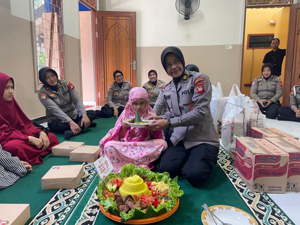 Dalam kesempatan tersebut, para Polwan menyerahkan bantuan berupa kebutuhan pokok dan perlengkapan sehari-hari, serta memberikan dukungan moril kepada anak-anak panti.