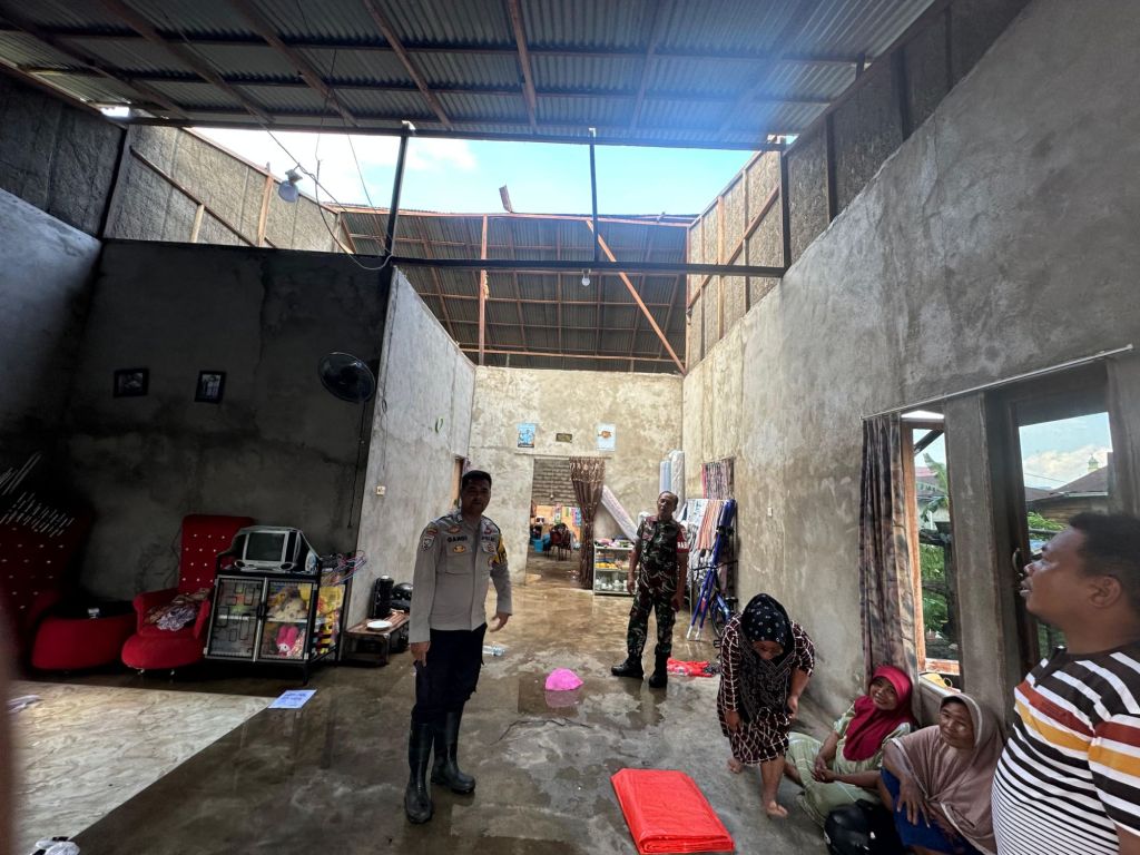 Instansi terkait bersama Bhabinkamtibmas Siantan tengah bergotong royong membantu membersihkan puing maupun barang yang berserakan dilokasi rumah yang terdampak bencana.