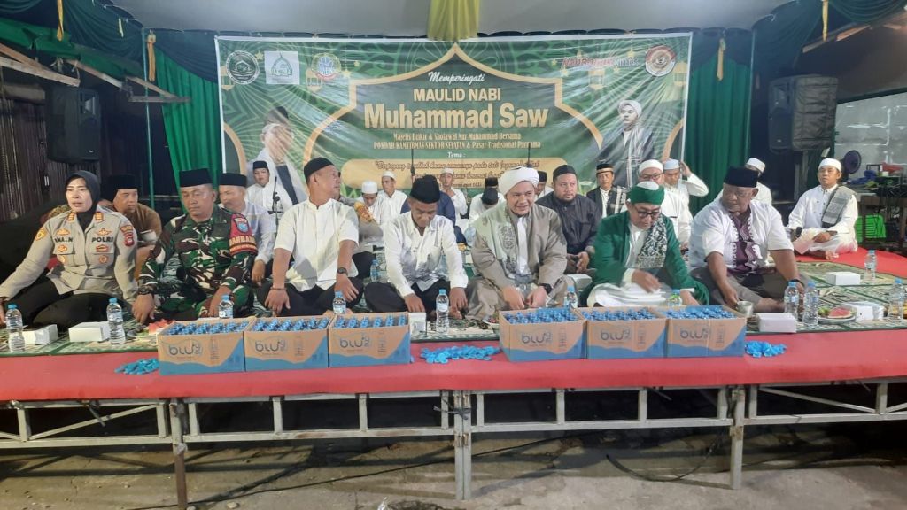 Pontianak Selatan, Polda Kalbar – Senin, 29 September 2025. Suasana khidmat dan penuh keberkahan menyelimuti kawasan Pasar Tradisional Purnama, Kelurahan Parittokaya, Kecamatan Pontianak Selatan. Ratusan masyarakat dari berbagai kalangan tumpah ruah menghadiri Peringatan Maulid Nabi Muhammad SAW 1447 H yang digelar pada Minggu malam (28/9) oleh Majelis Dzikir dan Sholawat Nur Muhammad bersama Pengelola Pasar Purnama serta Pokdar Kamtibmas Bhayangkara Pontianak Selatan.