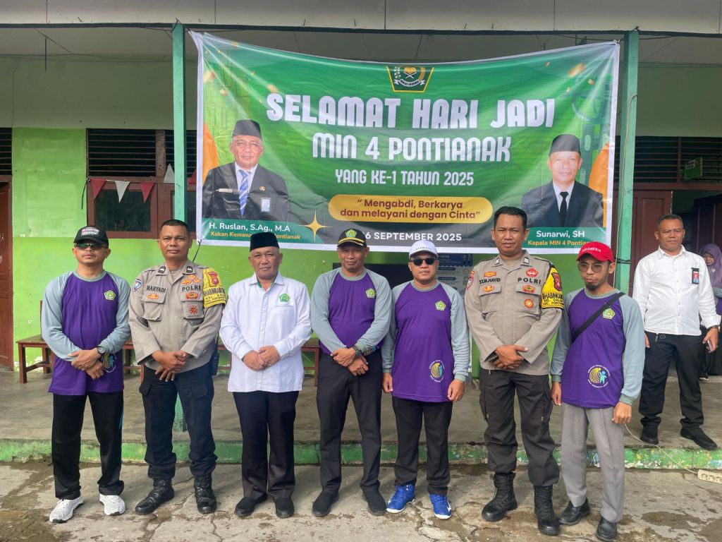 Pontianak Timur, Kalbar – Dalam rangka memperingati Hari Jadi ke-1 Madrasah Ibtidaiyah Negeri (MIN) 4 Teladan, Waka Polsek Pontianak Timur AKP Maman Sutarman bersama anggota Bhabinkamtibmas melaksanakan giat pengamanan kegiatan Gerak Jalan Sehat yang digelar di Jl. Tanjung Raya II, Kelurahan Saigon, pada Selasa (30/09/2025).