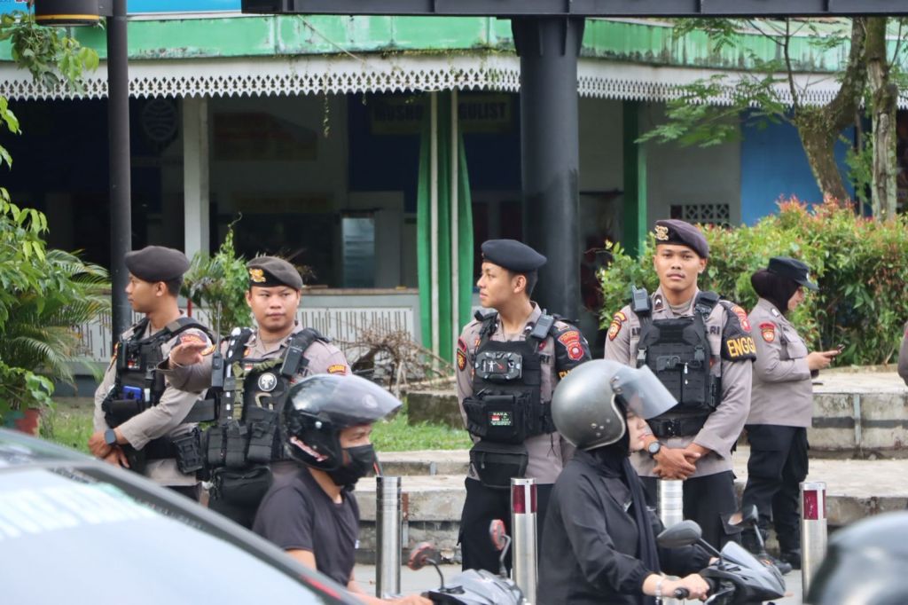 Polresta Pontianak menerjunkan personel untuk mengamankan jalannya aksi. Polisi tampak mengatur lalu lintas agar tidak terjadi kemacetan sekaligus menjaga suasana tetap kondusif.