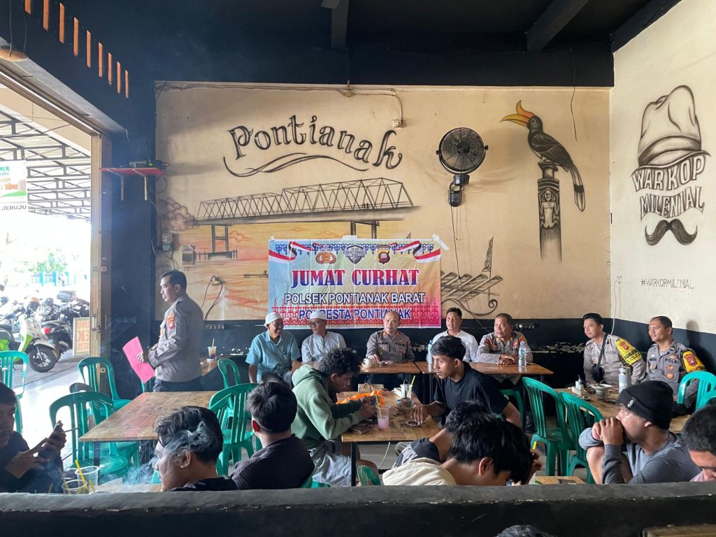 Pontianak Barat, Polda Kalbar – Polsek Pontianak Barat melaksanakan kegiatan Jumat Curhat pada hari Jumat, 3 Oktober 2025 sekira pukul 14.00 WIB bertempat di Coffee Mileniall, Jalan Kom Yos Sudarso, Kelurahan Sungai Beliung, Kecamatan Pontianak Barat.
