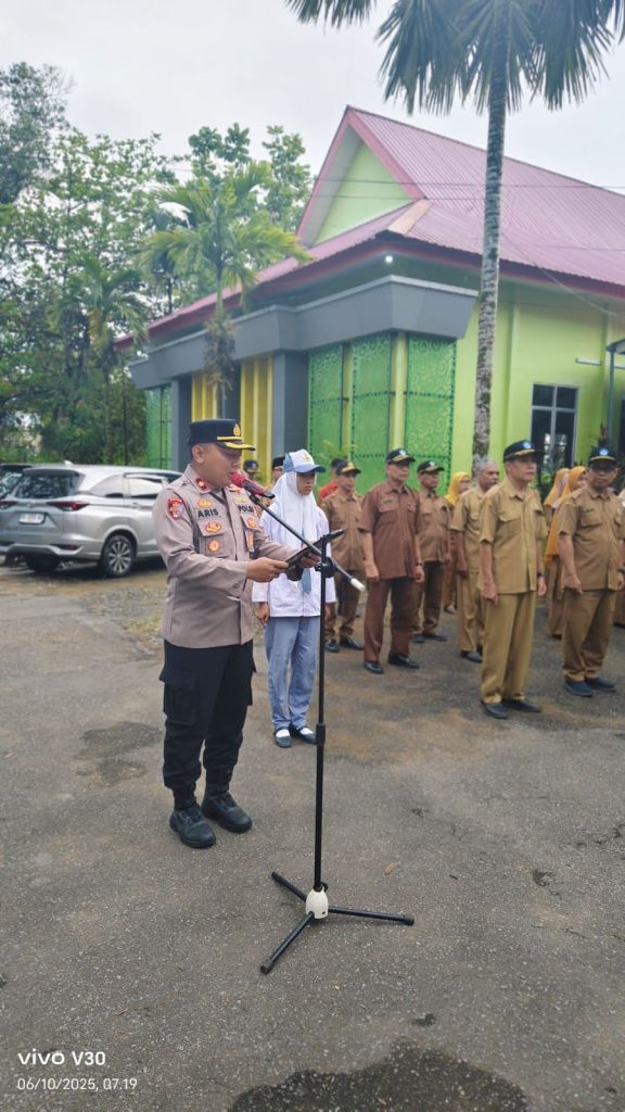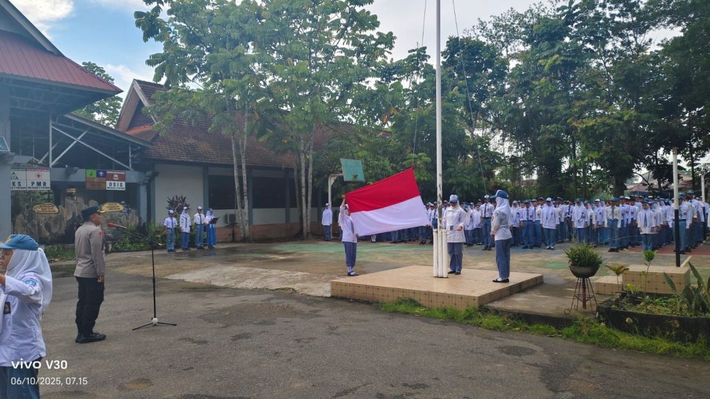 PONTIANAK,KALBAR – Kapolsek Pontianak Utara sampaikan edukasi tertib berlalulintas dan budaya disiplin dilingkungan sekolah,hal ini disampaikan didaulat menjadi pembina upacara bendera di SMK Negeri 6 Jl. 28 Oktober kelurahan siantan hulu. Senin (6/10/2025) Pagi.