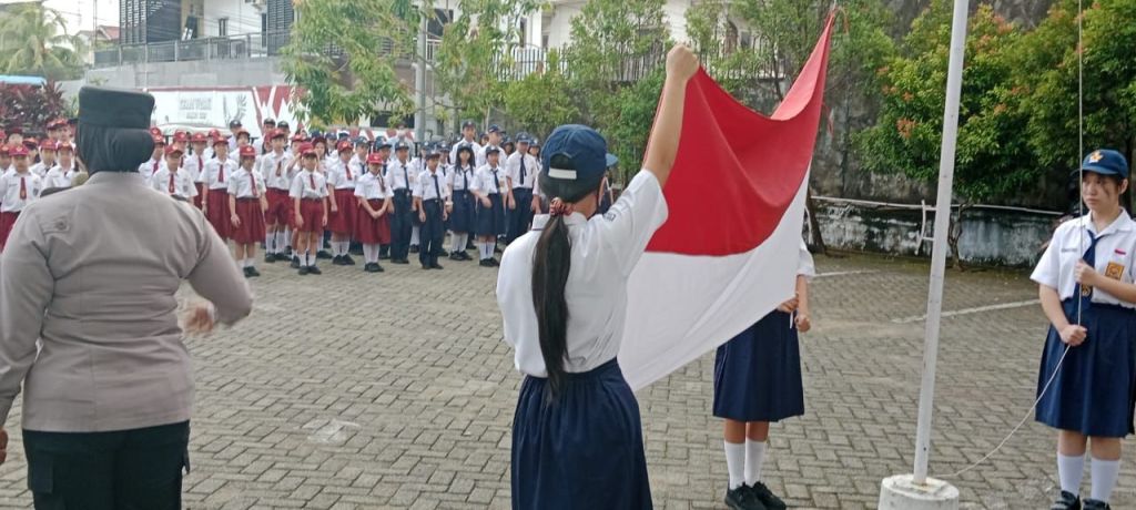 Pontianak Selatan, Polda Kalbar – Senin, 6 Oktober 2025. Kapolsek Pontianak Selatan AKP Inayatun Nurhasanah, S.H., memimpin kegiatan upacara bendera di Sekolah TK Kinderfield Preschool and Kindergarten Pontianak, Jalan Purnama Madya No.27, Kelurahan Akcaya, Kecamatan Pontianak Selatan. Kegiatan ini juga menjadi ajang silaturahmi dan edukasi bagi para siswa sejak usia dini.