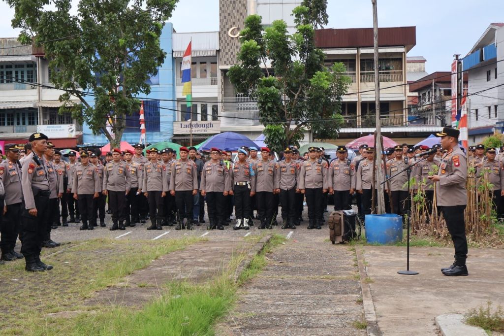 Apel pengamanan dipimpin langsung oleh Kapolresta Pontianak Kombes Pol Suyono, S.I.K., S.H., M.H., yang dalam arahannya menekankan pentingnya sinergi dan kewaspadaan seluruh personel dalam menjaga keamanan, kelancaran, dan kenyamanan masyarakat selama berlangsungnya kegiatan keagamaan tersebut.