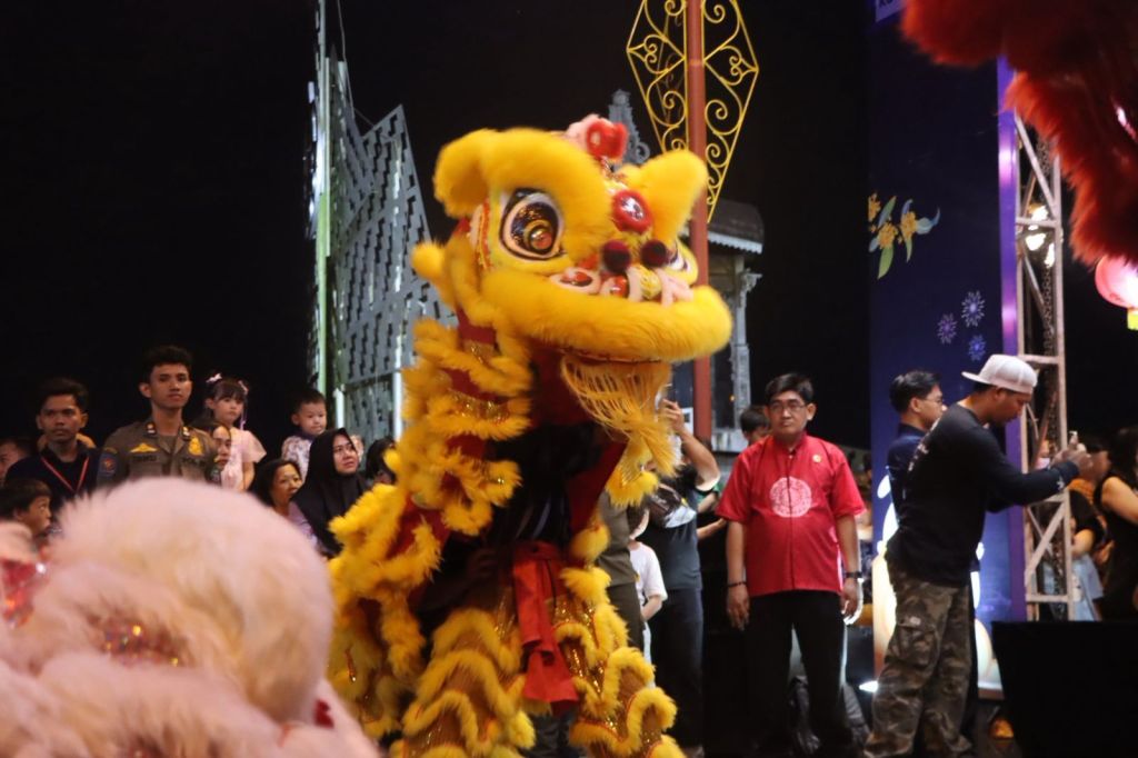Suasana malam di Taman Alun Kapuas tampak semarak dengan hiasan lampion, pertunjukan seni budaya Tionghoa, serta antusiasme masyarakat yang turut memeriahkan jalannya festival.
