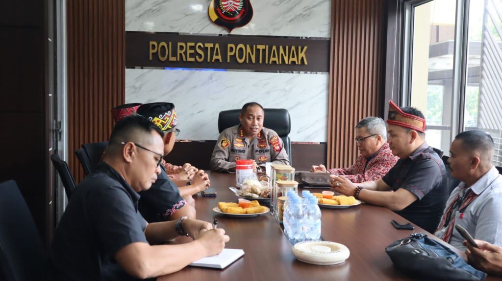 Pontianak, Polda Kalbar – Kapolresta Pontianak Kombes Pol Suyono, S.I.K., S.H., M.H. menerima audiensi dari Dewan Adat Dayak (DAD) Kota Pontianak bersama Panitia Pelaksana Final Show and Concert Artis Dayak Generation (ADG) ke-4 Tahun 2025, pada Senin (6/10/2025) di ruang kerja Kapolresta Pontianak.