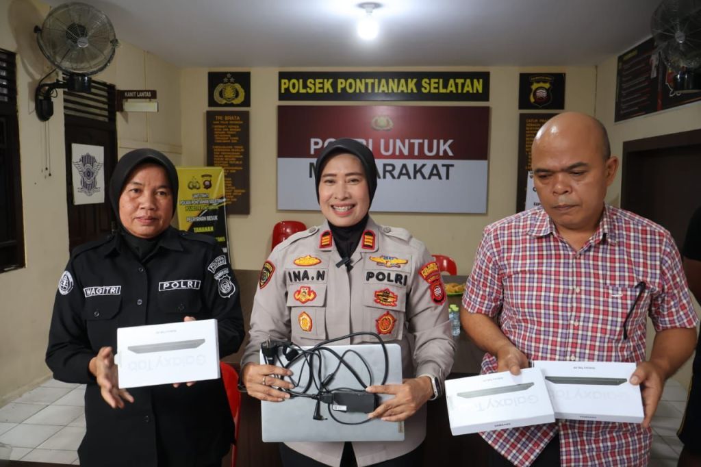 Setelah menerima laporan, Unit Reskrim Polsek Pontianak Selatan segera melakukan penyelidikan dengan menelusuri jejak barang hasil curian. Dari hasil pelacakan, salah satu tablet ditemukan berada di tangan YD, yang mengaku membeli barang tersebut dari seorang perempuan bernama DN.