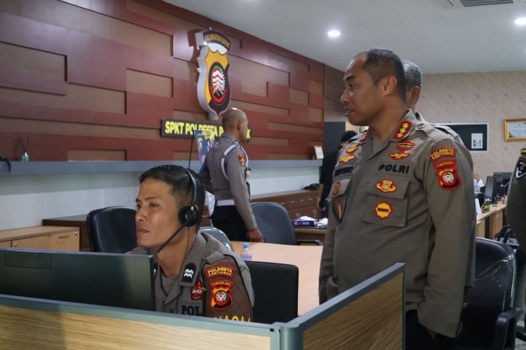 Dalam kesempatan tersebut, Kapolresta Pontianak Kombes Pol Suyono, S.I.K., S.H., M.H. meninjau langsung kesiapan personel serta sarana pendukung layanan, mulai dari perangkat komunikasi hingga jaringan sistem 110.