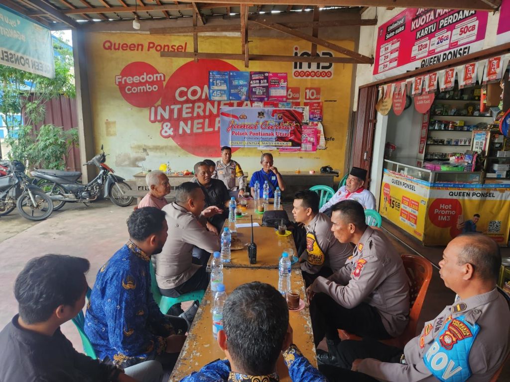 PONTIANAK,KALBAR – Tampung informasi dan keluhan masyarakat Polsek Pontianak Utara ngopi bareng masyarakat disalah satu warung kopi Jl. Kathulistiwa Kelurahan Batulayang.Jum’at (17/10/2025).