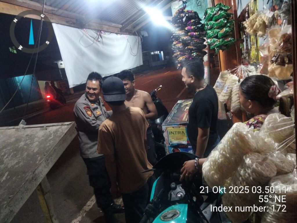 Selain itu, Aipda Supriadi juga berinteraksi langsung dengan warga yang masih beraktivitas pada malam hari, mengajak mereka untuk tidak ragu melaporkan setiap kejadian mencurigakan kepada pihak kepolisian.