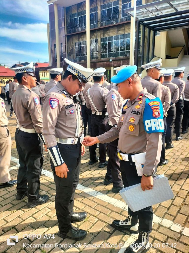 Pontianak, POLDA KALBAR – Propam Polresta Pontianak melaksanakan kegiatan pemeriksaan kerapian personel di lingkungan Mapolresta Pontianak pada Senin (20/10/2025).