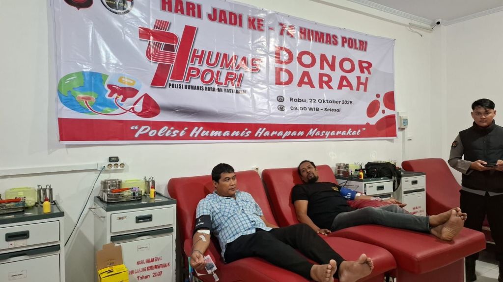 Pontianak , Polda Kalbar – Dalam rangka memperingati Hari Jadi Humas Polri ke-74, Polresta Pontianak melaksanakan kegiatan donor darah di Kantor PMI Kota Pontianak, pada Rabu, (22/10/2025).