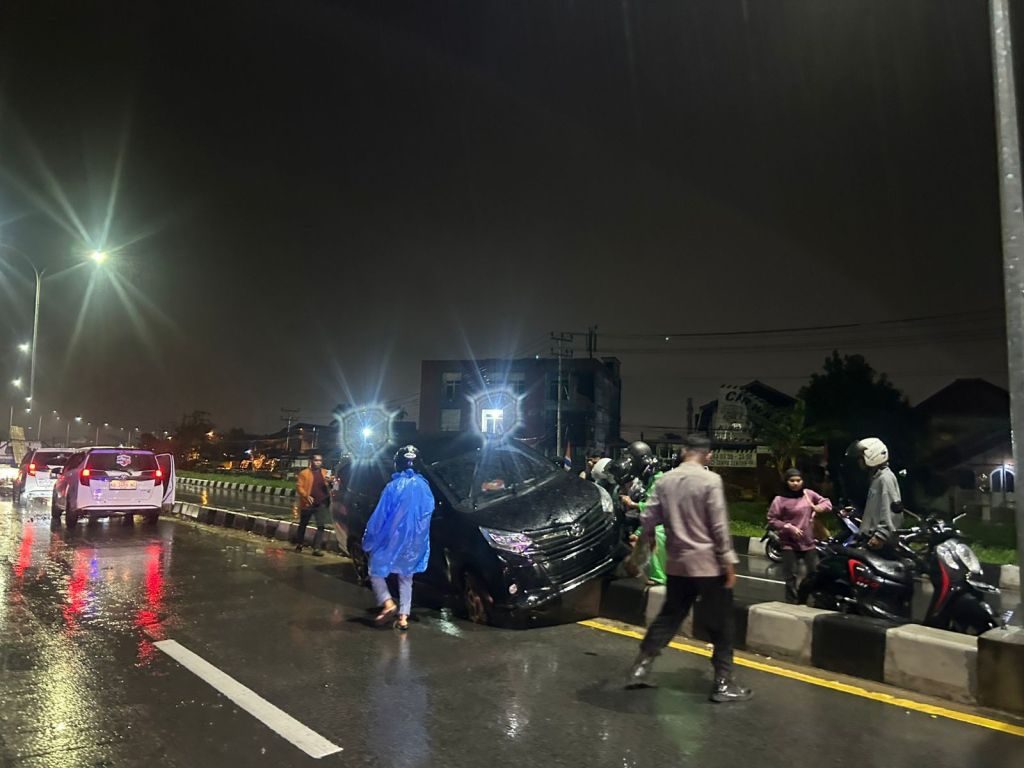 Kecelakaan tersebut melibatkan satu unit mobil pribadi yang diduga menabrak pembatas jalan. Berdasarkan keterangan awal di lokasi, insiden terjadi akibat pengemudi diduga mengantuk saat melintas di jalan yang dalam kondisi hujan dan licin.