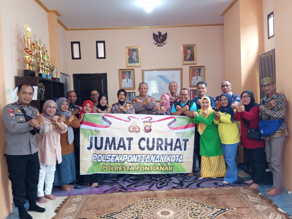 Pontianak,Polda Kalbar, – Sebagai upaya menampung aspirasi dan keluhan masyarakat sekaligus mempererat kemitraan antara polisi dan warga, Polsek Pontianak Kota menggelar kegiatan Jumat Curhat pada Jumat (24/10/2025) sekitar pukul 09.30 WIB di Kantor Lurah Tengah, Jl. Rajawali, Kelurahan Tengah, Kecamatan Pontianak Kota. Kegiatan tersebut dipimpin langsung oleh Wakapolsek Pontianak Kota, AKP Surojo.