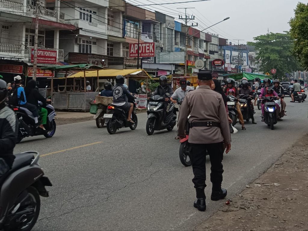 PONTIANAK, KALBAR – Menyikapi banyak keluhan masyarakat terkait antrian kendaraan yang akan mengisi BBM disejumlah SPBU dipontianak utara, Polsek Pontianak Utara kerahkan personelnya untuk melakukan himbauan dan pengaturan kepada beberapa sopir untuk tidak menggunakan badan jalan untuk parkir antrian.