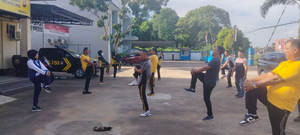 Kegiatan dipimpin langsung oleh Kapolsek Pontianak Timur, AKP Tarminto, SH., MH., dan diikuti seluruh personel yang sedang melaksanakan dinas. Senam pagi ini menjadi rutinitas untuk menjaga kondisi tubuh tetap prima dalam menghadapi tugas-tugas kepolisian yang menuntut stamina dan kesiapan tinggi.