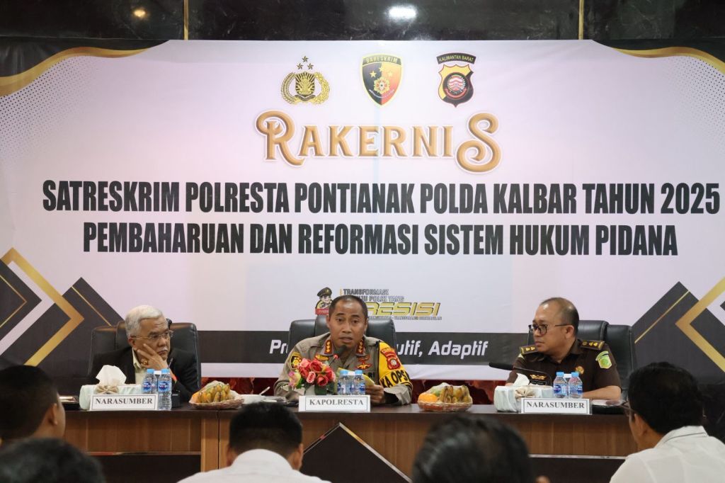PONTIANAK, Polda Kalbar – Satuan Reserse Kriminal (Sat Reskrim) Polresta Pontianak menggelar Rapat Kerja Teknis (Rakernis) Tahun 2025 dengan tema “Pembaruan dan Reformasi Sistem Hukum Pidana”. Kegiatan resmi dibuka oleh Kapolresta Pontianak dan berlangsung dengan antusias dari seluruh peserta. Kamis 20/11