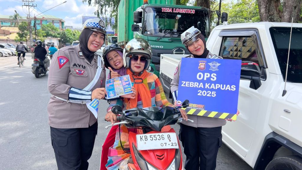 Pontianak Polda Kalbar – Satuan Lalu Lintas Polresta Pontianak terus menggencarkan sosialisasi Operasi Zebra Kapuas 2025 sebagai upaya meningkatkan kesadaran masyarakat terhadap pentingnya tertib berlalu lintas. Sosialisasi dilakukan melalui dua cara, yakni pemanfaatan media sosial dan pembagian pamflet kepada para pengendara di jalan raya.(20/11/2025)