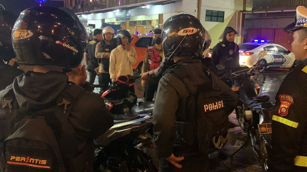 Patroli kemudian berlanjut ke kawasan Pasar Tengah, dan ditemui sekelompok remaja yang sedang nongkrong dengan kendaraan yang menggunakan knalpot brong, yang menimbulkan kebisingan serta berpotensi mengganggu kenyamanan warga.