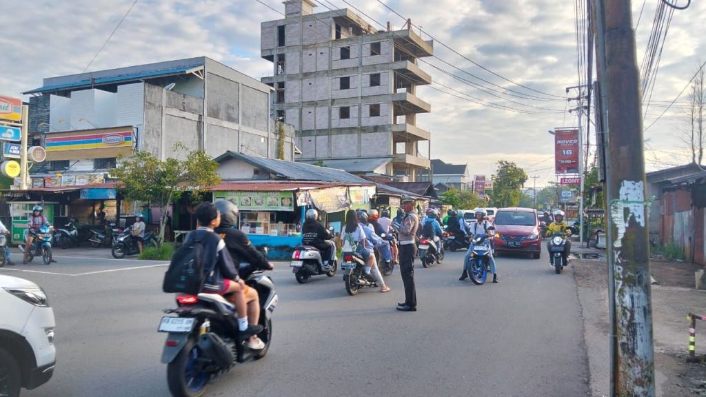 Pontianak Selatan, Polda Kalbar – Senin, 24 November 2025. Personil Polsek Pontianak Selatan melaksanakan pengaturan dan penjagaan lalu lintas di Wilayah Polsek Pontianak Selatan antisipasi macet lalu lintas dan kecelakaan Lalu lintas di Wilayah Pontianak Selatan.