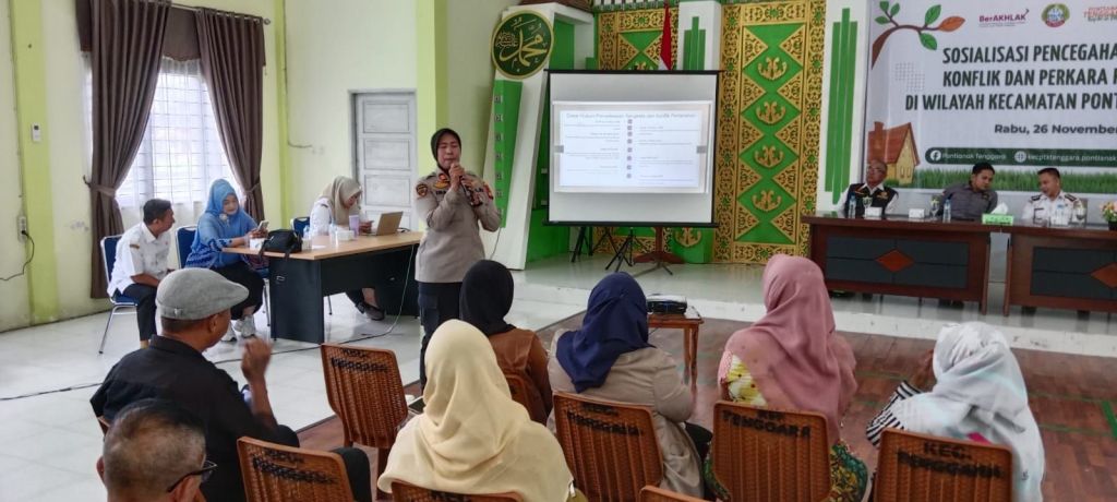Dalam pemaparannya, Kapolsek Pontianak Selatan menjelaskan sejumlah poin penting terkait potensi dan penyebab sengketa tanah, serta peran kepolisian dalam penanganan maupun pencegahannya.