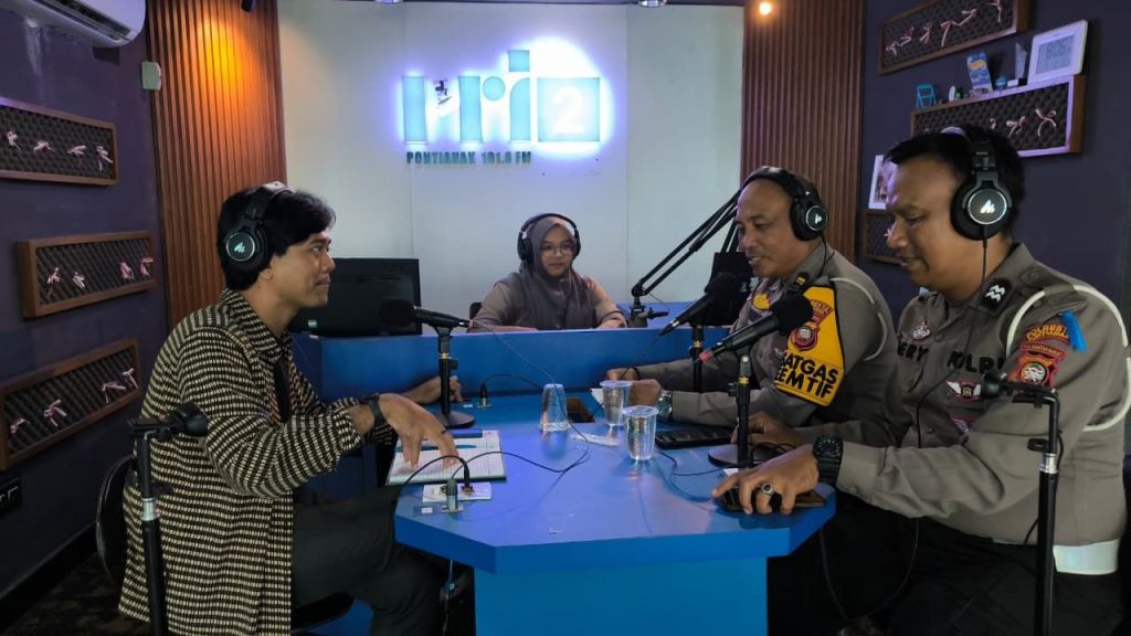 Pontianak, Polda Kalbar Rabu (26/11/2025) – Memasuki hari ke-10 pelaksanaan Operasi Zebra Kapuas 2025, Satgas Preemtif Polresta Pontianak kembali meningkatkan kegiatan sosialisasi untuk mengedukasi masyarakat tentang pentingnya tertib berlalu lintas. Kali ini, sosialisasi dilakukan melalui siaran media mainstream Pro 2 RRI Kota Pontianak.