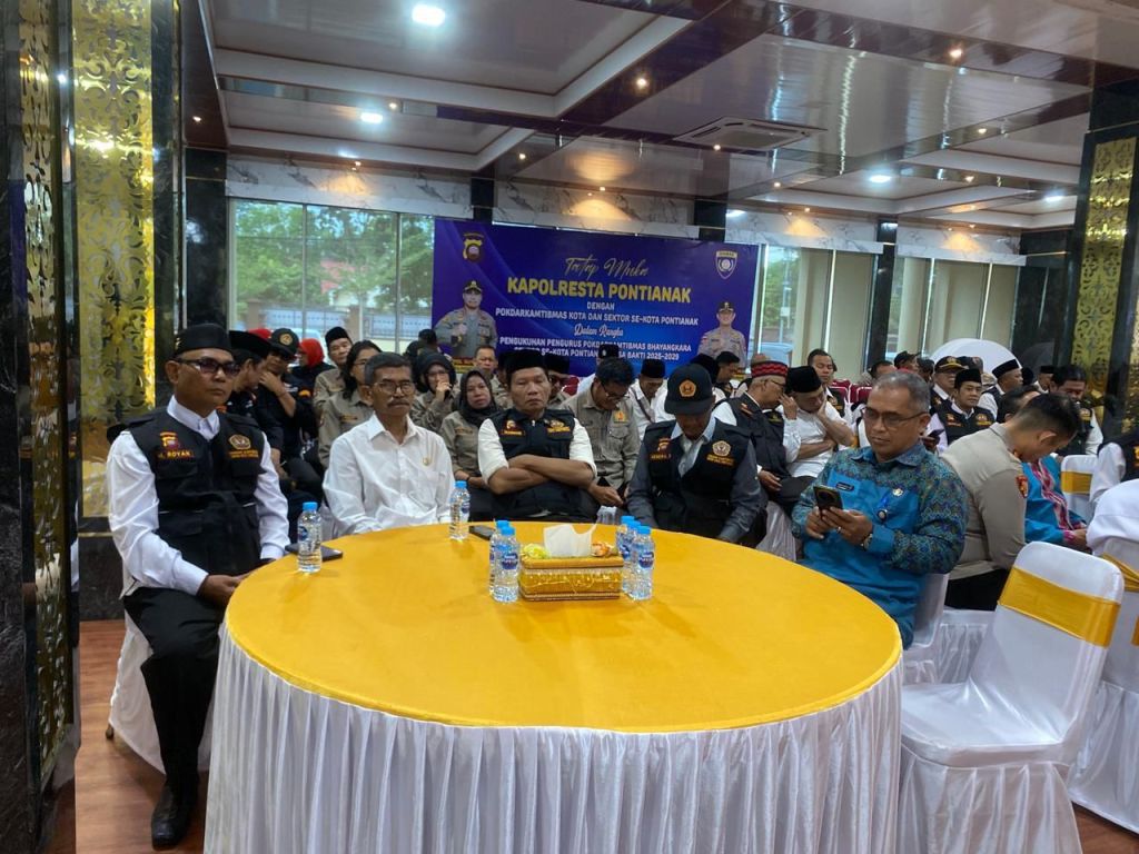 Pontianak, Polda Kalbar – Polresta Pontianak menggelar kegiatan tatap muka sekaligus pengukuhan pengurus Pokdarkamtibmas Bhayangkara sektor se-Kota Pontianak untuk masa bakti 2025–2029, bertempat di Ballroom Aula Polresta Pontianak, Jumat (5/12).