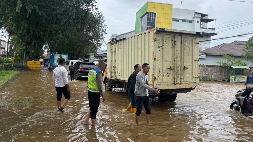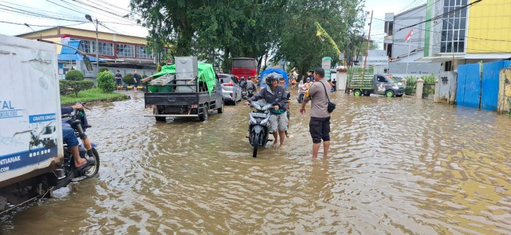 PONTIANAK, KALBAR – Memasuki bulan Desember dengan curah hujan tinggi disertai air pasang mengakibatkan banjir rob yang merendam disejumlah ruas jalan dan perumahan diwilayah Pontianak utara,menyikapi fenomena alam tersebut personel Polsek Pontianak Utara disiagakan disejumlah lokasi untuk membantu masyarakat. Senin (8/12/2025).