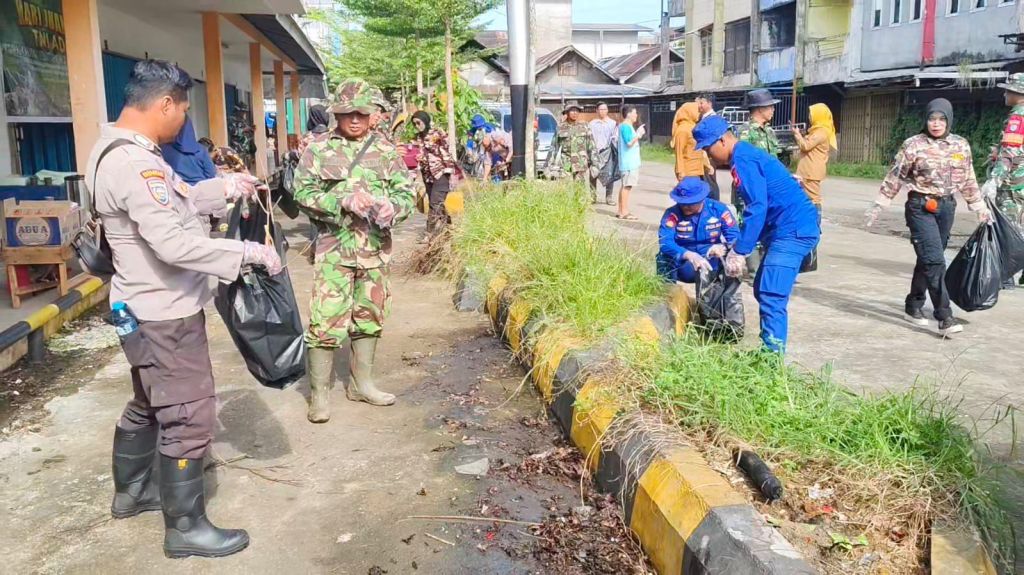 PONTIANAK,KALBAR – Personel Polsek Pontianak Utara dalam mempererat dan perkuat soliditas bersama TNI Turut ambil bagian dalam Kegiatan gotong royong dan bhakti sosial dalam rangka memperingati Hari Juang TNI AD Yang berlangsung di kawasan pasar puring dan terminal siantan. Selasa (9/12/2025) pagi.