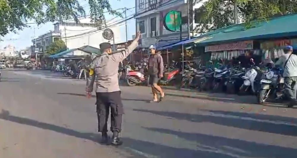 Di lokasi, petugas tampak membantu menyeberangkan warga, mengarahkan kendaraan agar tidak berhenti sembarangan, serta memberikan imbauan kepada pengendara untuk tetap tertib dan mengutamakan keselamatan.