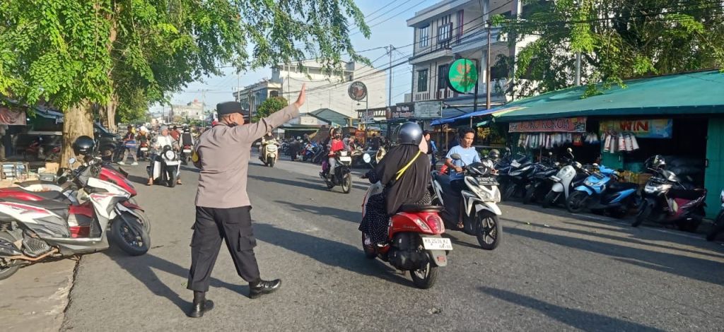 Pontianak,Polda Kalbar, -Untuk menjaga kelancaran aktivitas masyarakat pada jam sibuk pagi, personel Polsek Pontianak Kota melaksanakan pengaturan arus lalu lintas di kawasan Pasar Pagi Sepakat, Jalan Dr. Wahidin, Kamis (11/12/2025).