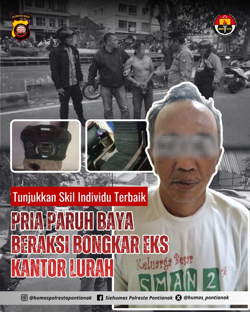 Pontianak, POLDA KALBAR– Skil individu dipertunjukkan Rs (40) dalam aksi membongkar gedung eks kantor lurah Sungai Jawi Luar di Jalan Pak Kasih Pontianak, Selasa (9/12/25)