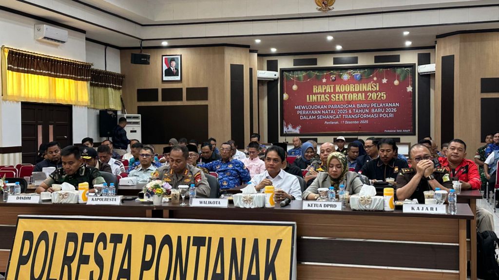 Polresta Pontianak menggelar Rapat Koordinasi (Rakor) Lintas Sektoral dalam rangka Operasi Lilin Kapuas 2025 guna pengamanan Perayaan Natal Tahun 2025 dan Malam Tahun Baru 2026, bertempat di Aula Polresta Pontianak, Rabu (17/12/2025).