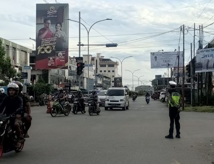 Pengaturan lalu lintas tersebut dilakukan guna menjaga kelancaran dan keamanan arus kendaraan, mengingat pada pagi hari aktivitas masyarakat cukup tinggi, baik pelaku usaha maupun masyarakat yang melakukan berbagai kegiatan.