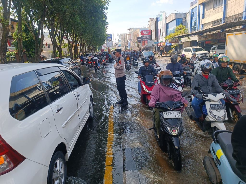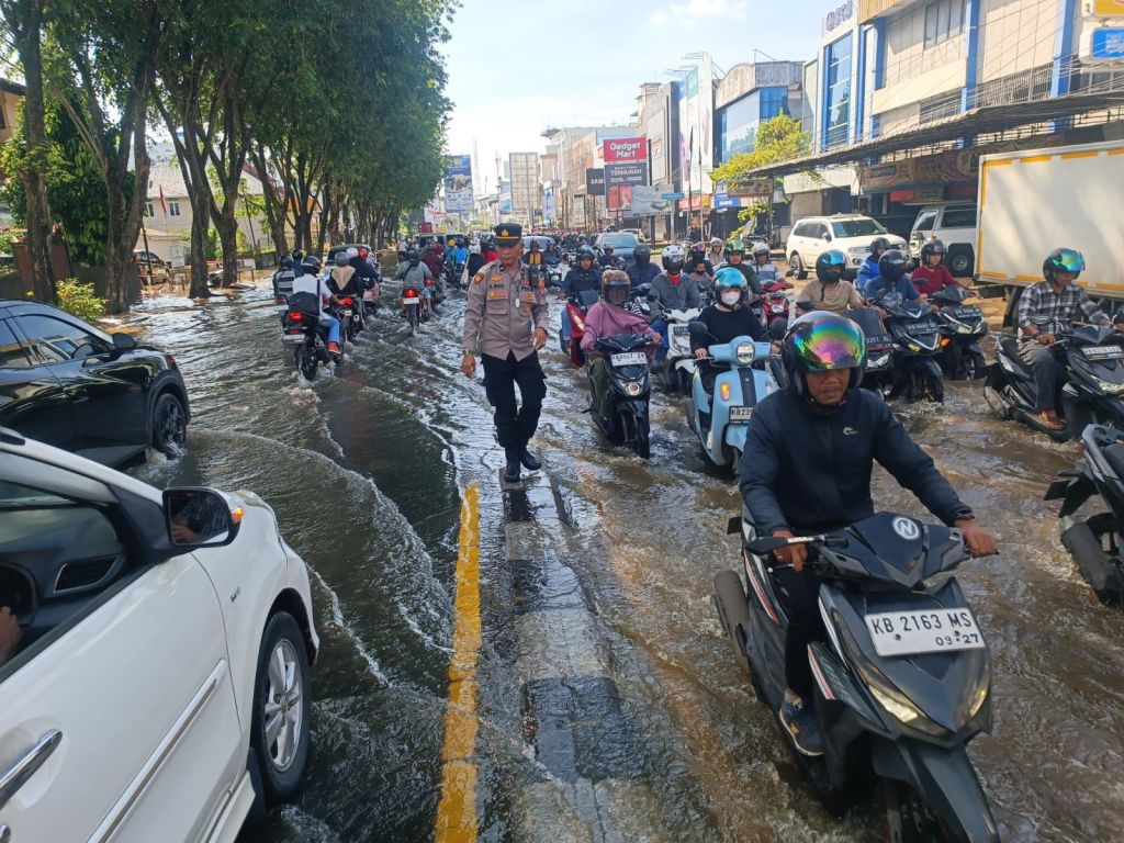 Polresta Pontianak mengimbau kepada seluruh pengguna jalan untuk tetap berhati-hati, mematuhi arahan petugas di lapangan, serta menyesuaikan kecepatan kendaraan saat melintasi jalan yang tergenang air.