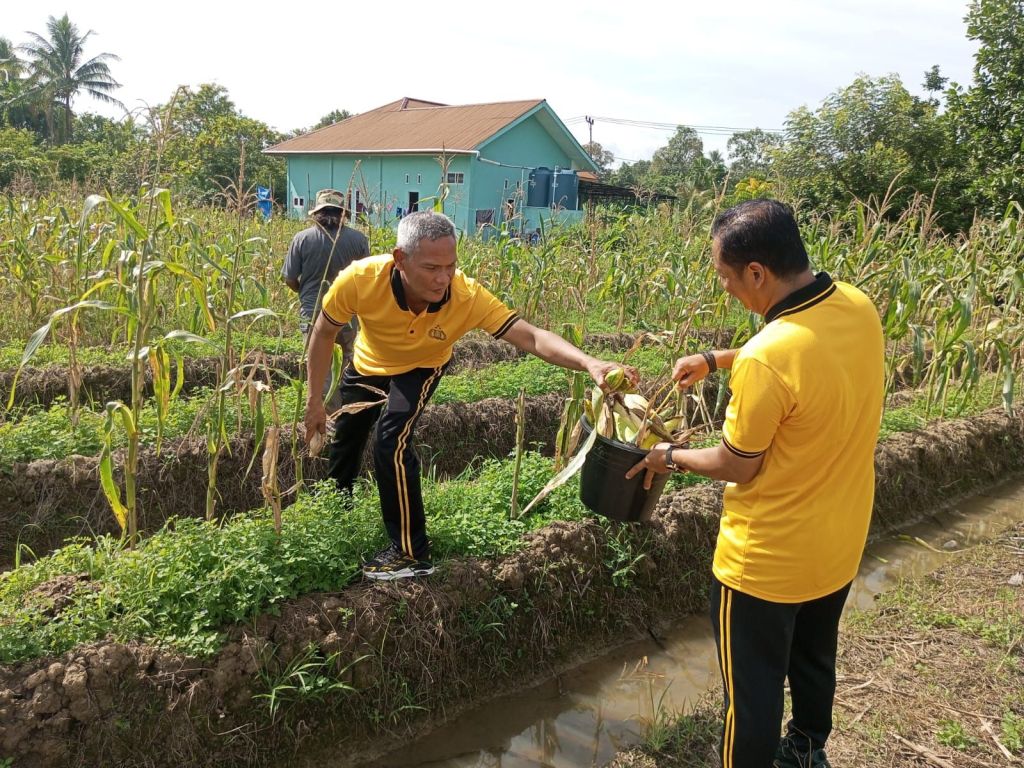 Pontianak, Kalbar – Kanit Binmas Polsek Pontianak Barat, AKP Surwanto, memimpin langsung kegiatan panen tanaman jagung di lahan Kelompok Tani Berdikari yang berlokasi di Jalan Berdikari, Kelurahan Pall Lima, Kecamatan Pontianak Barat, pada Sabtu (3/1).
