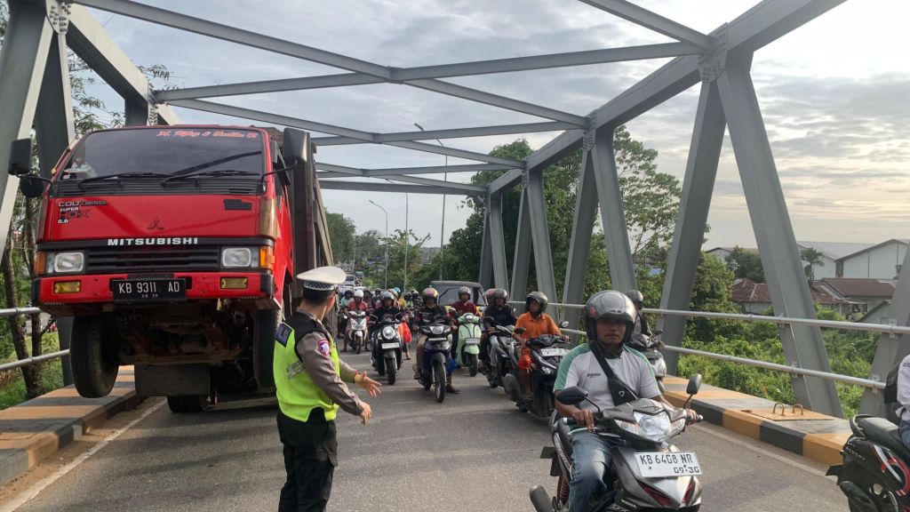 Kejadian tersebut sempat menghambat arus lalu lintas di sekitar jembatan. Personel Pospam Tanjung Raya dengan sigap melakukan pengamanan lokasi, pengaturan lalu lintas, serta koordinasi dengan pihak terkait guna proses evakuasi kendaraan.