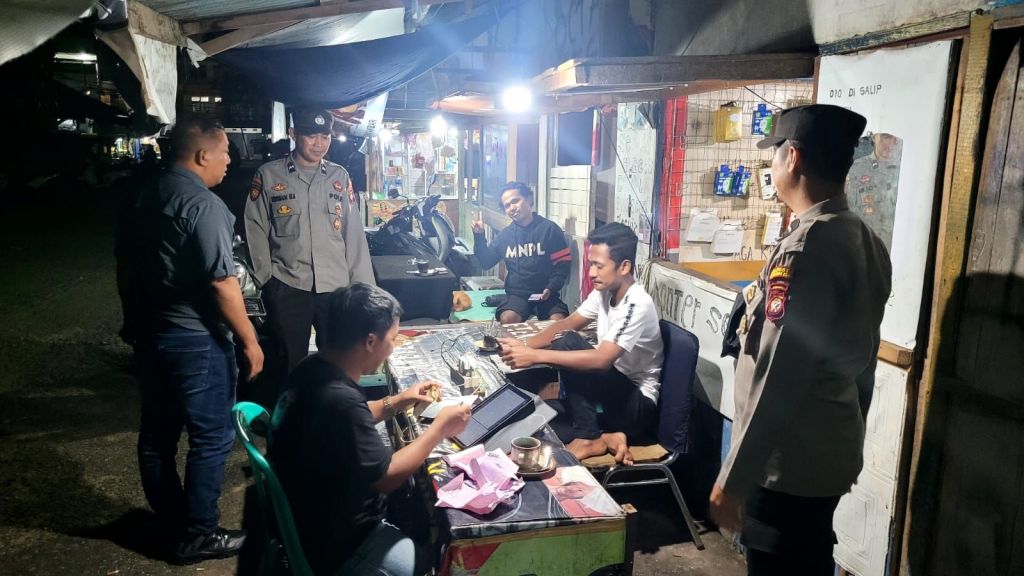 Petugas patroli berdialog dengan masyarakat serta mengingatkan agar meningkatkan kewaspadaan terhadap pelaku kriminal yang setiap waktu mengintai kelengahan masyarakat.