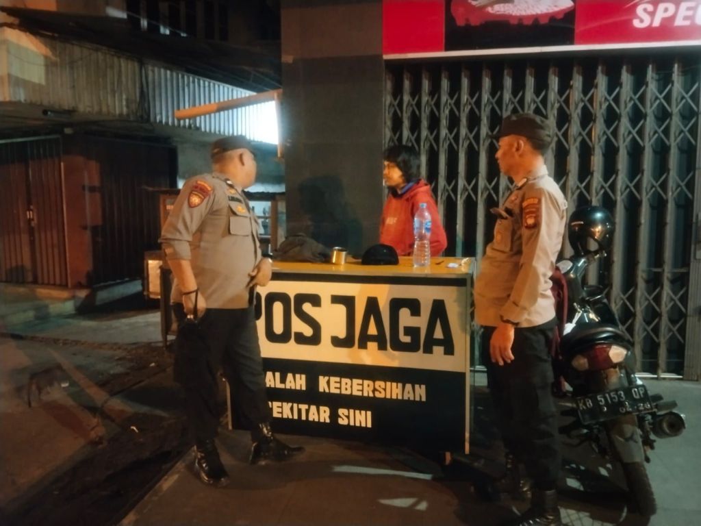 Pontianak, Polda Kalbar, – Personel Patroli Enggang Polsek Pontianak Kota melaksanakan patroli malam hari dengan menyambangi penjaga malam di Komplek Pertokoan Jalan Nusa Indah, Kecamatan Pontianak Kota. Kegiatan ini dilakukan guna menjaga situasi keamanan dan ketertiban masyarakat (kamtibmas) tetap kondusif.